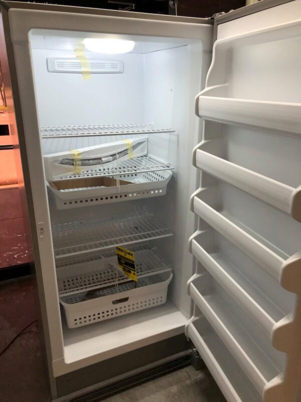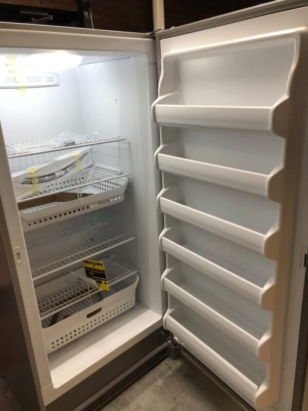 This is a brand new Frigidaire upright freezer. It comes with the manufacturer’s full factory warranty. Please retain your original sales receipt for all warranty service.