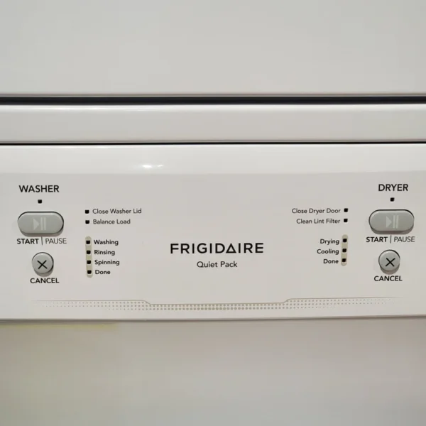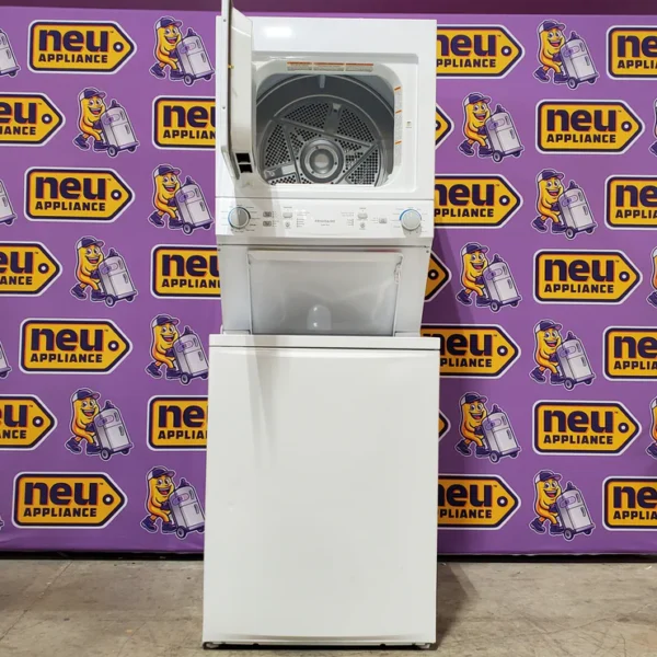 Frigidaire Electric Long Vent Stacked Laundry Center – 3.9 Cu. Ft Washer and 5.5 Cu. Ft. Dryer 4SD482 – FLCE7523AW – Scratch & Dent (Minor)