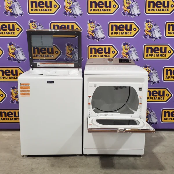 Maytag 4.7 cu. ft. Smart Top Load Washing Machine with Deep Fill Option MVW6230HW – Scratch & Dent (Minor) and Maytag 7.4 cu. ft. Electric Steam Dryer with Extra Power Button 16076 – MED7230HW – Scratch & Dent (Minor)