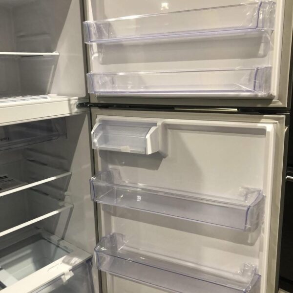 This Samsung top freezer refrigerator combines modern efficiency with reliable performance in a sleek design. Featuring Digital Inverter Technology, adjustable glass shelves, and LED lighting, it offers quiet operation and excellent food preservation. The stylish silver finish and practical layout make it a perfect fit for any kitchen.